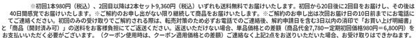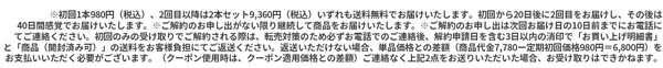 ※本商品は初回のみ受け取りで解約する際は電話での連絡後に「お買い上げ明細」と「商品」を返送が必要です。